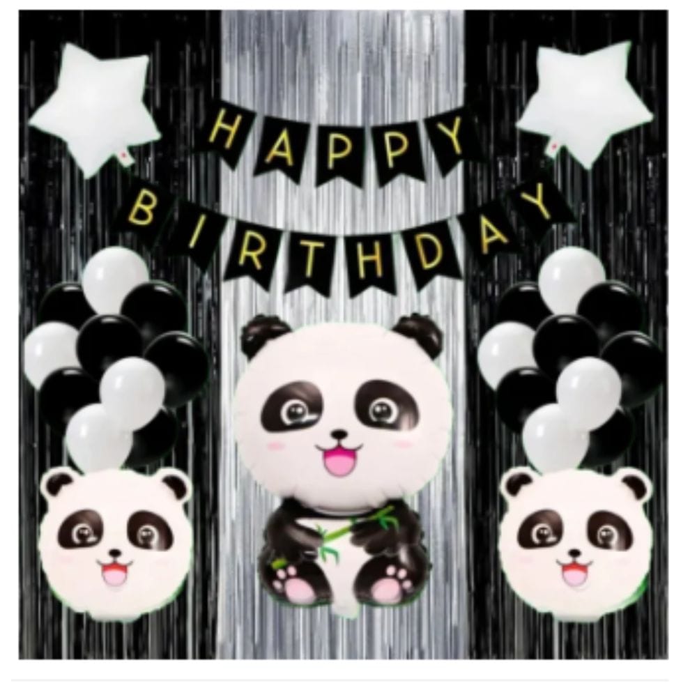 Celebrate in style with our 49 PCS Panda Happy Birthday Set—cute black & white theme balloons and décor for boys & girls, only at ChuzaToy!